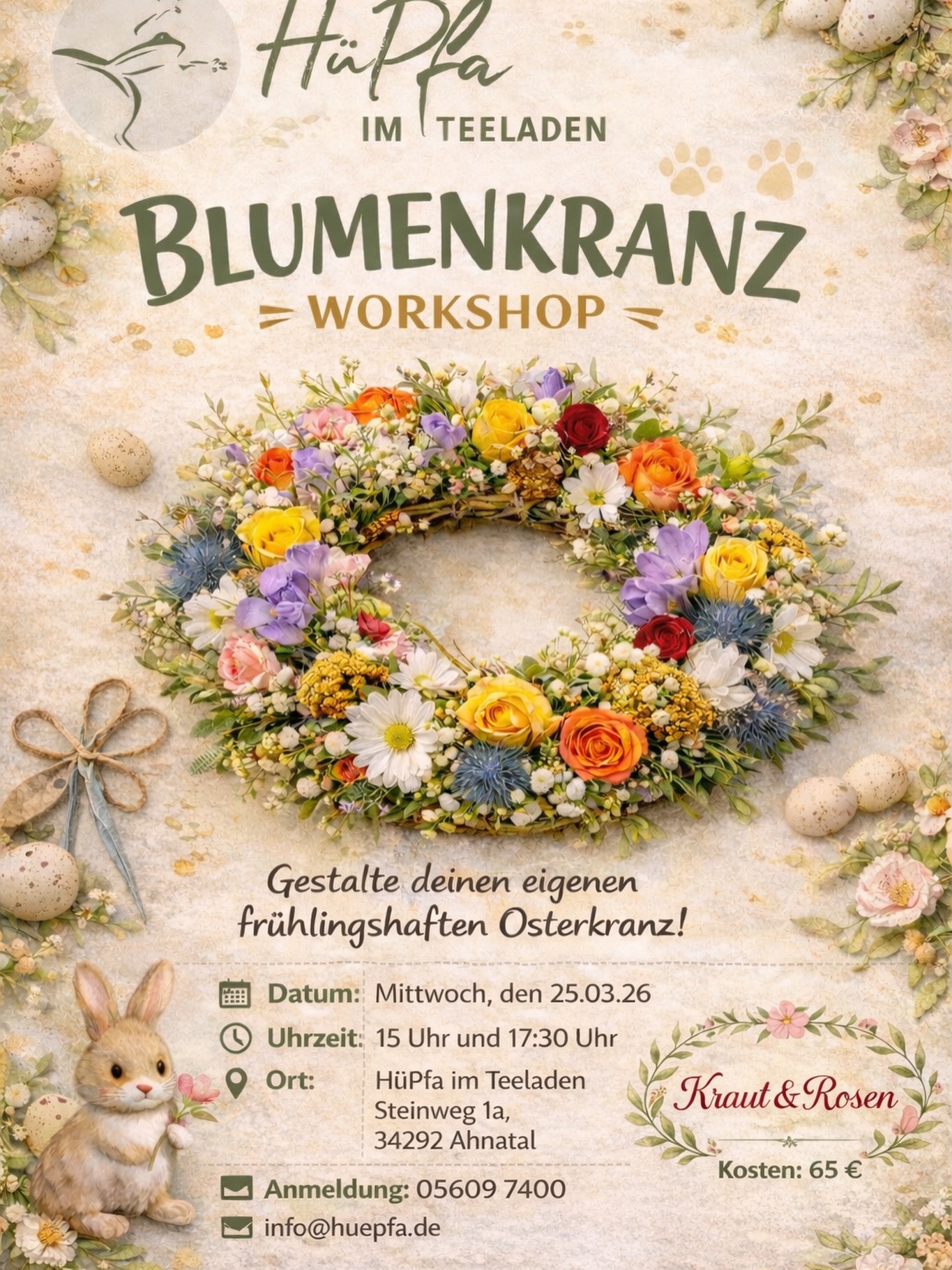 Voranmeldung unter info@huepfa.de oder persönlich im Laden